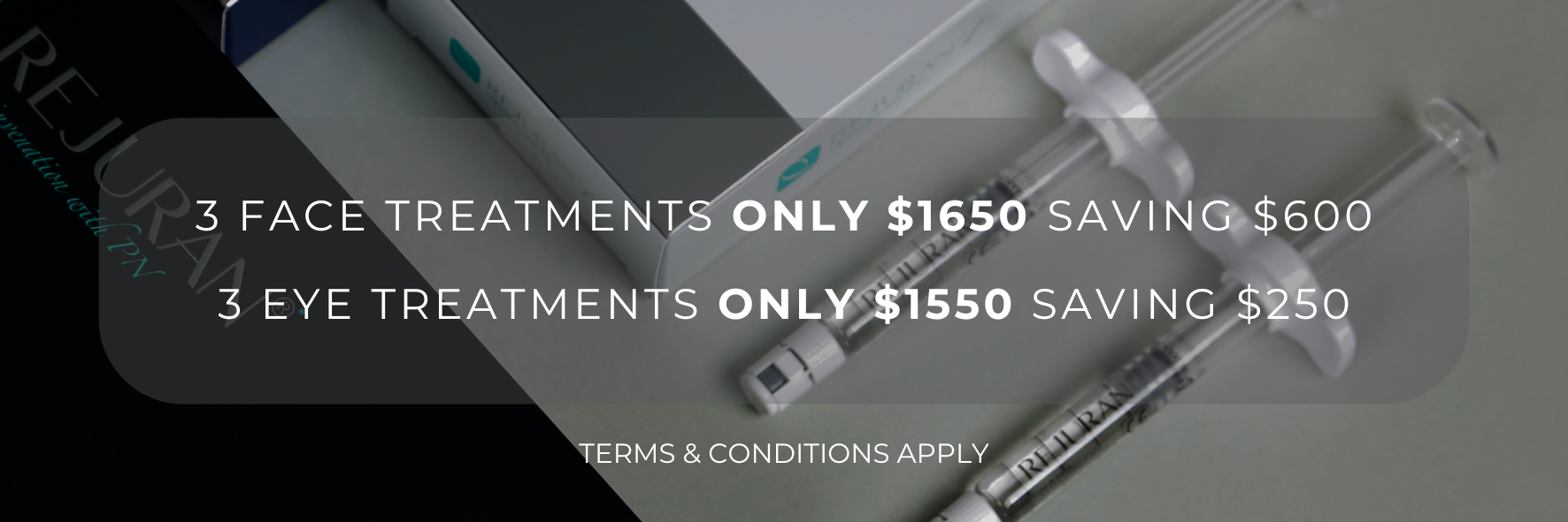 3 Face treatments for only $1,650 (saving $600). 3 Eye Treatments for only $1,550 (saving $250).